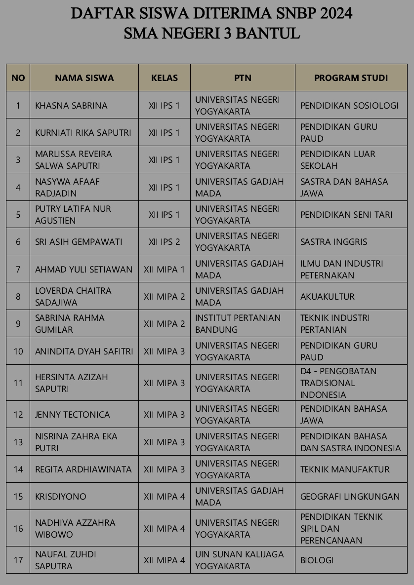 Siswa siswi SMA N 3 Bantul lolos SNBP